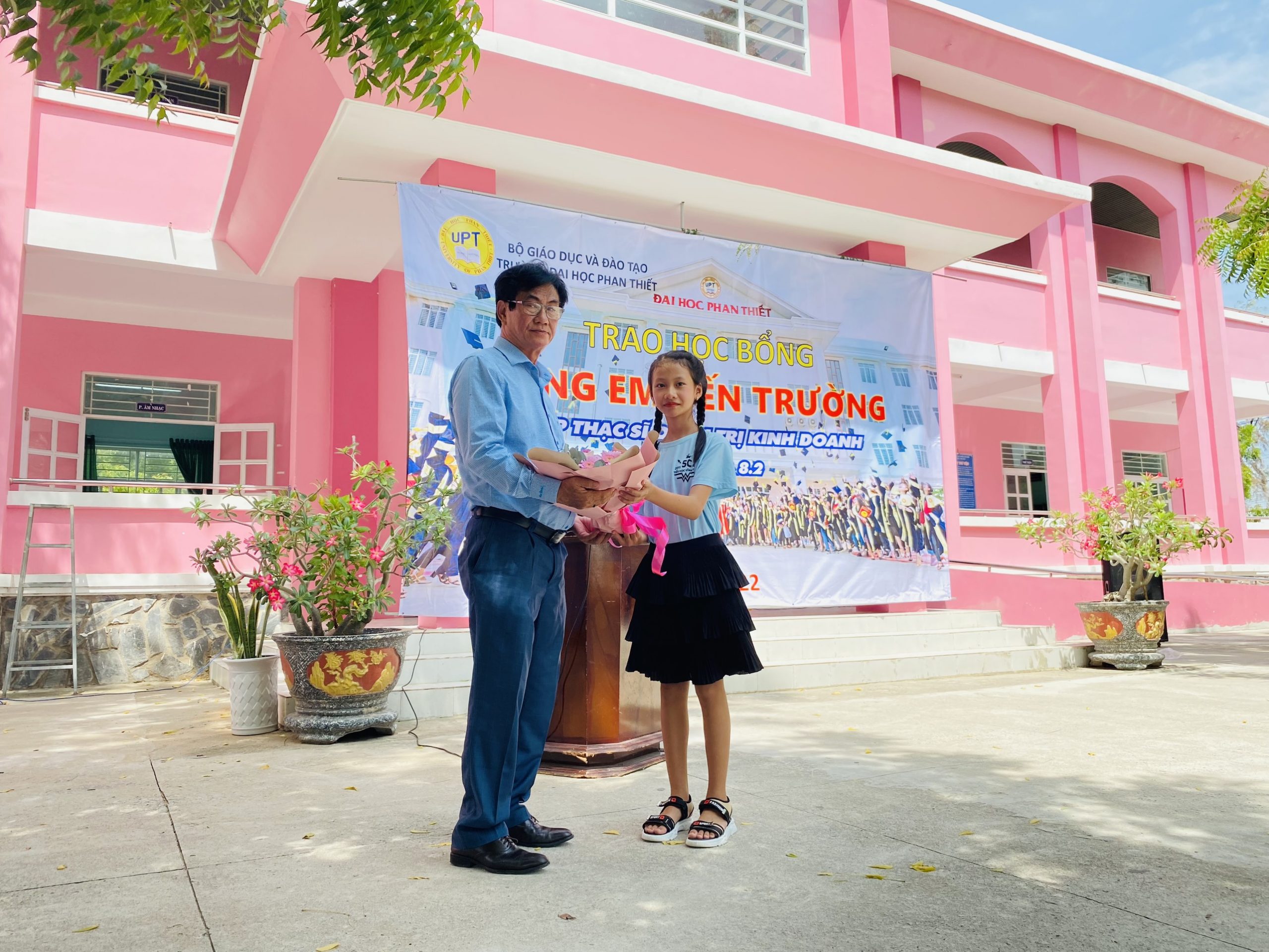 Đại diện Ban Giám Hiệu Trường Đại học Phan Thiết trao quà học bổng
