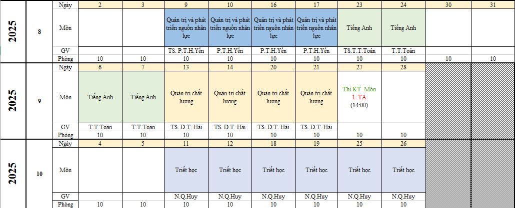 K11MBA1 – Kế hoạch học tập (T08.2025)