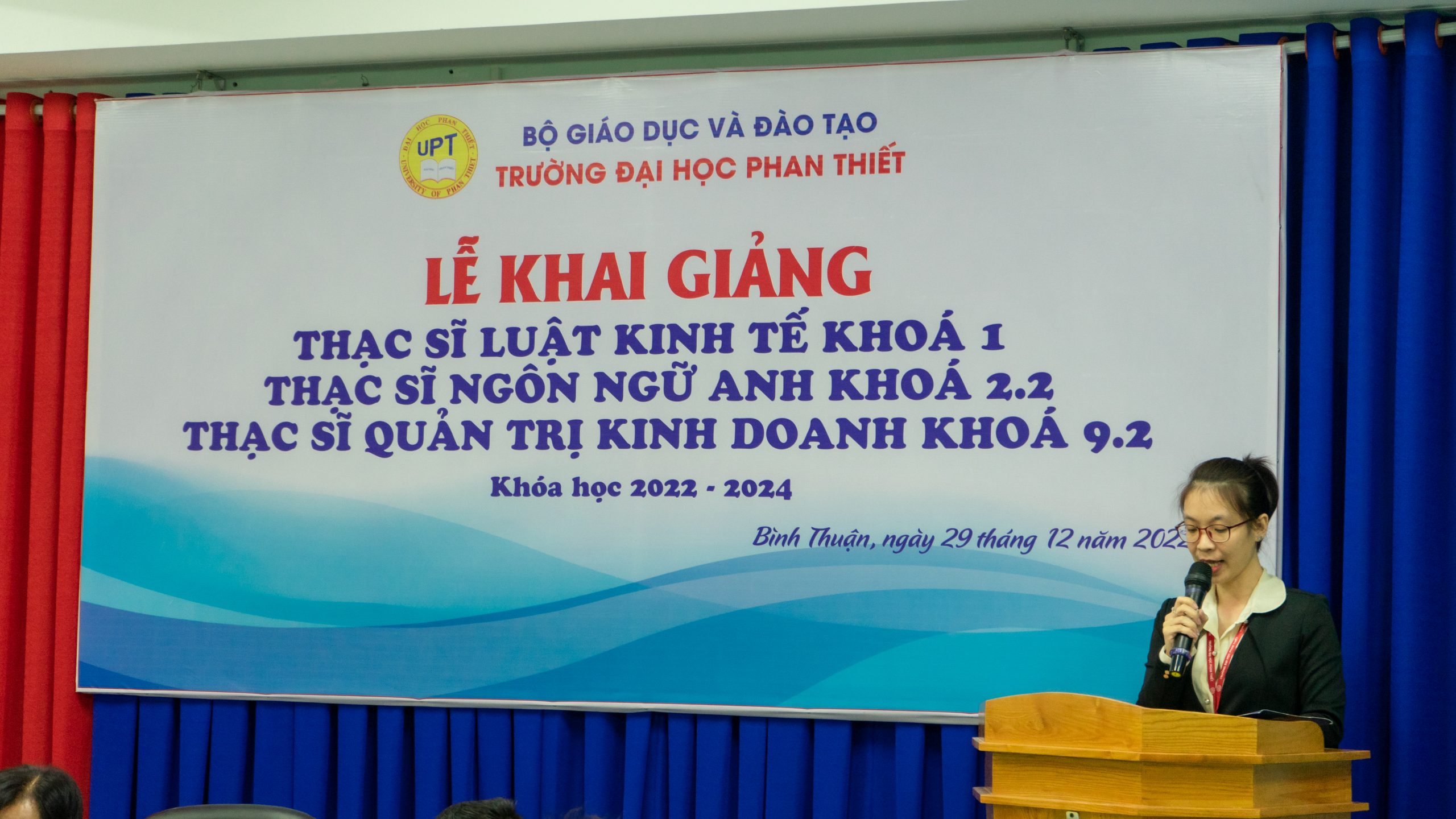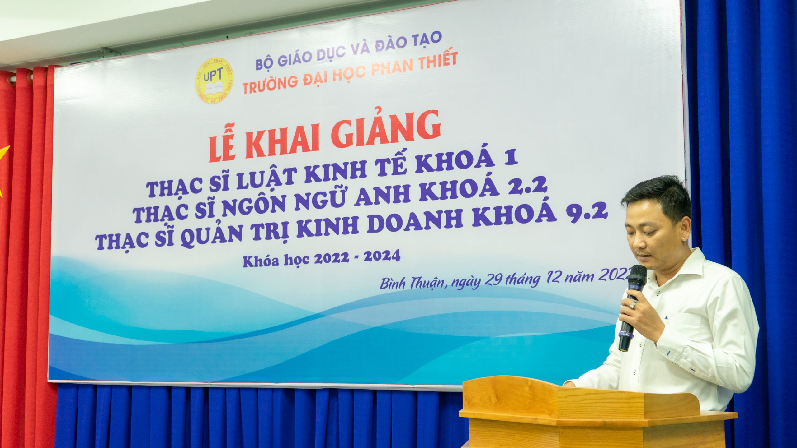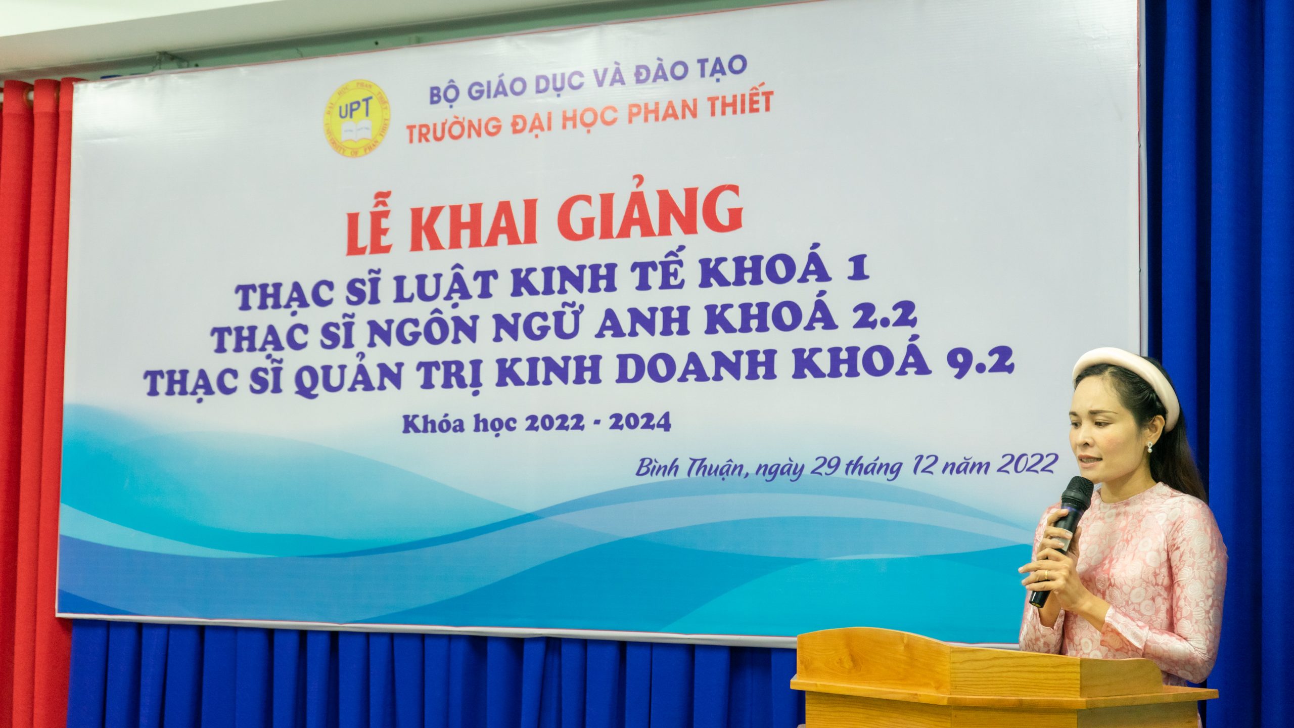 Thực hiện theo kế hoạch đào tạo Sau Đại học, vào ngày 29/12/2022, trường Đại học Phan Thiết đã long trọng tổ chức Lễ Khai giảng Cao học cho các tân học viên Cao học ngành Quản trị Kinh doanh Khóa 9.2 và ngành Ngôn ngữ Anh Khóa 2.2 và đặc biệt hơn tại Lễ khai giảng đợt 2_2022 long trọng chào đón thêm các tân học viên Cao học ngành Luật Kinh Tế khóa 1 tại Trường Đại học Phan Thiết.