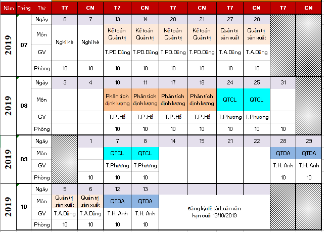 • Lịch học