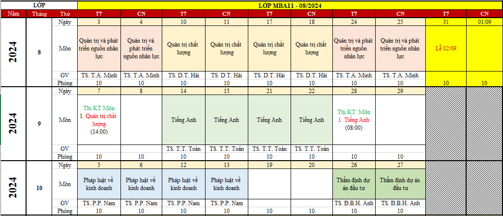 • MBA11 – Kế hoạch học tập (T08.2024)