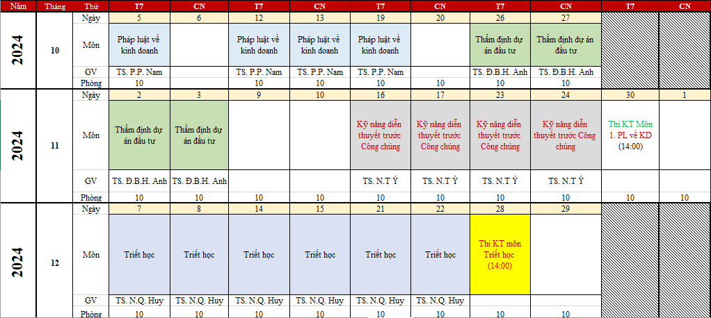 MBA11 – Kế hoạch học tập (T10.2024)