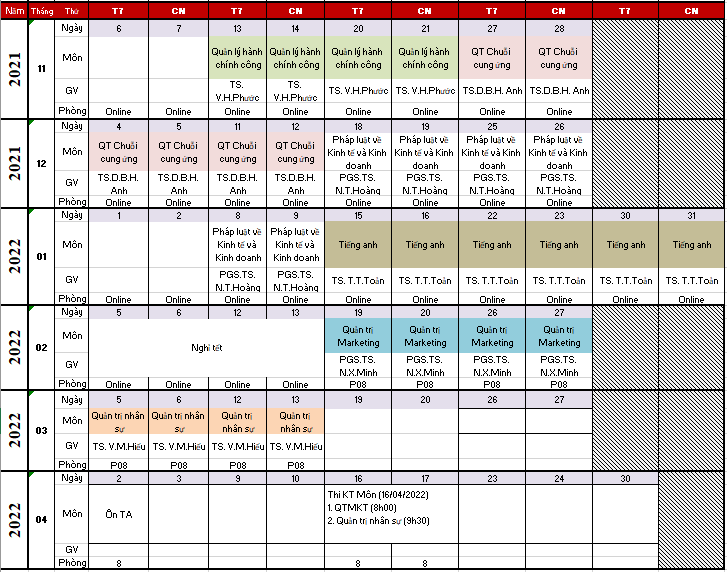 MBA7.2 – Kế hoạch học tập (T11.2021)