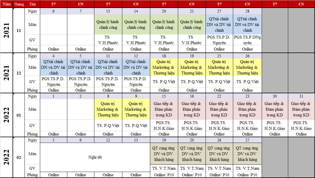 MBA7.2 – Kế hoạch học tập (T11.2021)