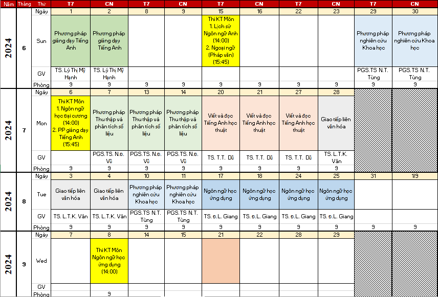 • Lịch học