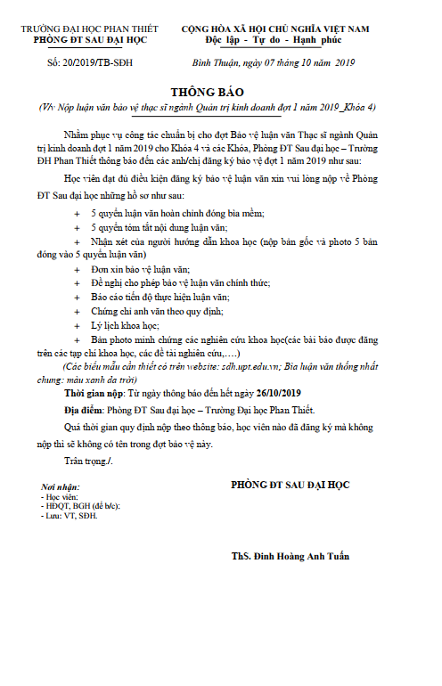 Thông báo nộp luận văn hoàn chỉnh Khóa 4_đợt 1 năm 2019