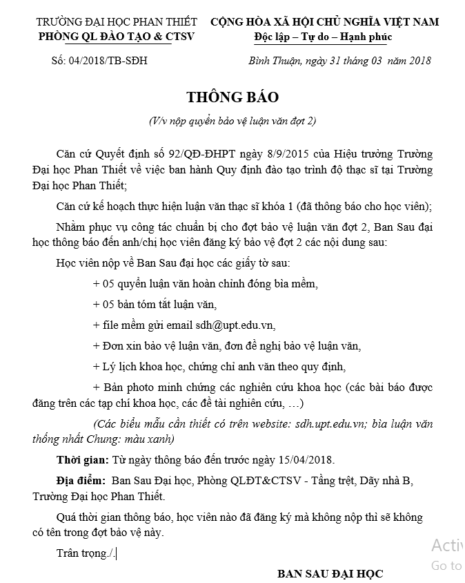 Thông báo nộp luận văn thạc sĩ Quản trị kinh doanh Khóa 1_đợt 2 năm 2018 Thông báo nộp luận văn thạc sĩ Quản trị kinh doanh Khóa 1_đợt 2 năm 2018