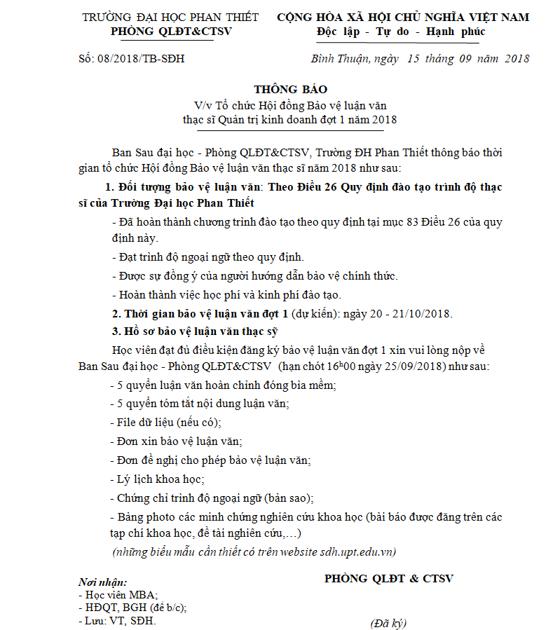 Thông báo nộp luận văn thạc sĩ Quản trị kinh doanh Khóa 2_đợt 1 năm 2018